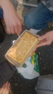 先日の東京、築地の場外市場で食べた、丸武の厚焼き玉子。
